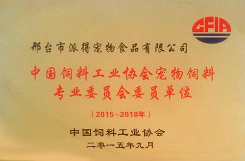被授予“中國(guó)飼料工業(yè)協(xié)會(huì)寵物飼料專業(yè)委員會(huì)委員單位”稱號(hào)